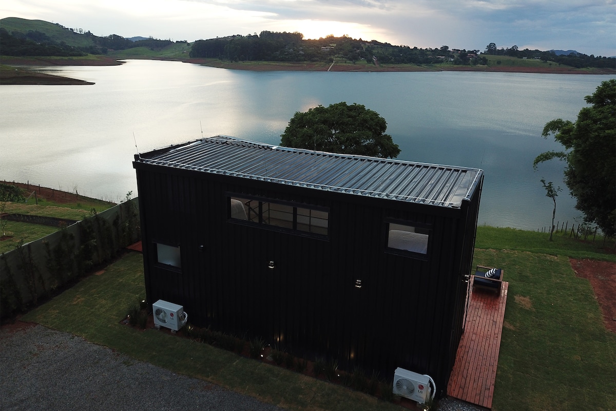 Կոնտեյներային տուն ջակուզիով և ջրամբարի տեսարանով