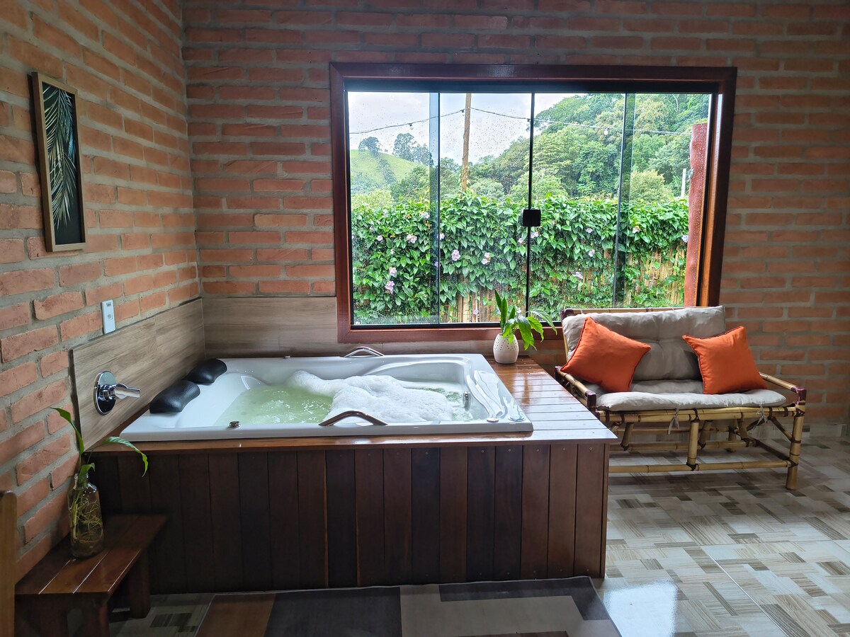 Que tal ver a paisagem se transformando ao longo das horas? Estrelas, lua, alvorada… Uma experiência de imersão na natureza, com conforto e privacidade. Banheira de imersão para duas pessoas, aquecimento a gás e tudo isso com uma vista exuberante! Sua diária já inclui café da manhã. Aquecimento a gás, cama gostosa, local para fogueira. Cozinha caipira com frigobar e cooler, fogão a lenha, microondas. Banheiro privativo. Temos serviço a parte de restaurante para o jantar