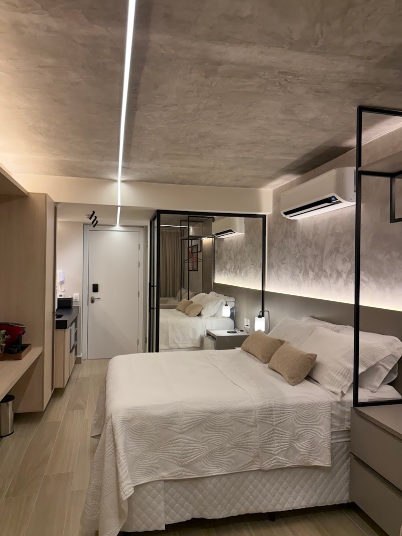 Բնակարան 218 Gold Flat ՝ Կաբո Բրանկոյի ափին մոտ, լողափից մի քանի մետր հեռավորության վրա ։ Հիանալի վայր է բարերի և ռեստորանների մոտակայքում ։ Նոր, հարմարավետ, հյուրանոցային կառույց ։ Այն ունի ֆիթնես կենտրոն, լողավազան, խաղասենյակ, սաունա, պտտվող ավտոտնակ, լվացքատուն և ռեստորան: Լոգասենյակ ։ Սենյակ Smart TV 43"- ով, օդորակիչով, երկտեղանի մահճակալով կամ երկու մեկտեղանի մահճակալով, պահարանով և սեյֆով ։ Խոհանոց ՝ միկրոավտոբուսով, փոքր սեղանով, էլեկտրական սալօջախով, միկրոալիքային վառարանով, բլենդերով, սրճեփով և խոհանոցային պարագաներով ։