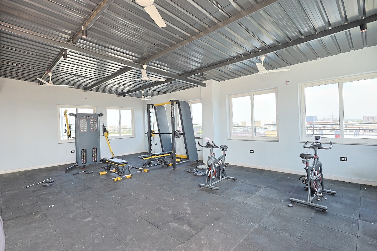 Հարմարավետ 2BHK բնակարան, որը գտնվում է առաջին հարկում, իդեալական է ընտանիքների և ճանապարհորդների համար ։ Ներառում է 2 օդորակիչով ննջասենյակ ՝ կից լոգասենյակներով, սմարթ հեռուստացույցներ, լավ կահավորված խոհանոց, ոչ AC բնակելի տարածք և առանձին պատշգամբ ։ Հյուրերը նաև օգտվում են պրեմիում նստատեղերով ընդհանուր տեռասից ։ Գտնվում է քաղաքի առանձնահատկություններին մոտ գտնվող հանգիստ բնակելի տարածքում ։ Վերելակ չկա ։ Wi - Fi - ը ներառված է ։
