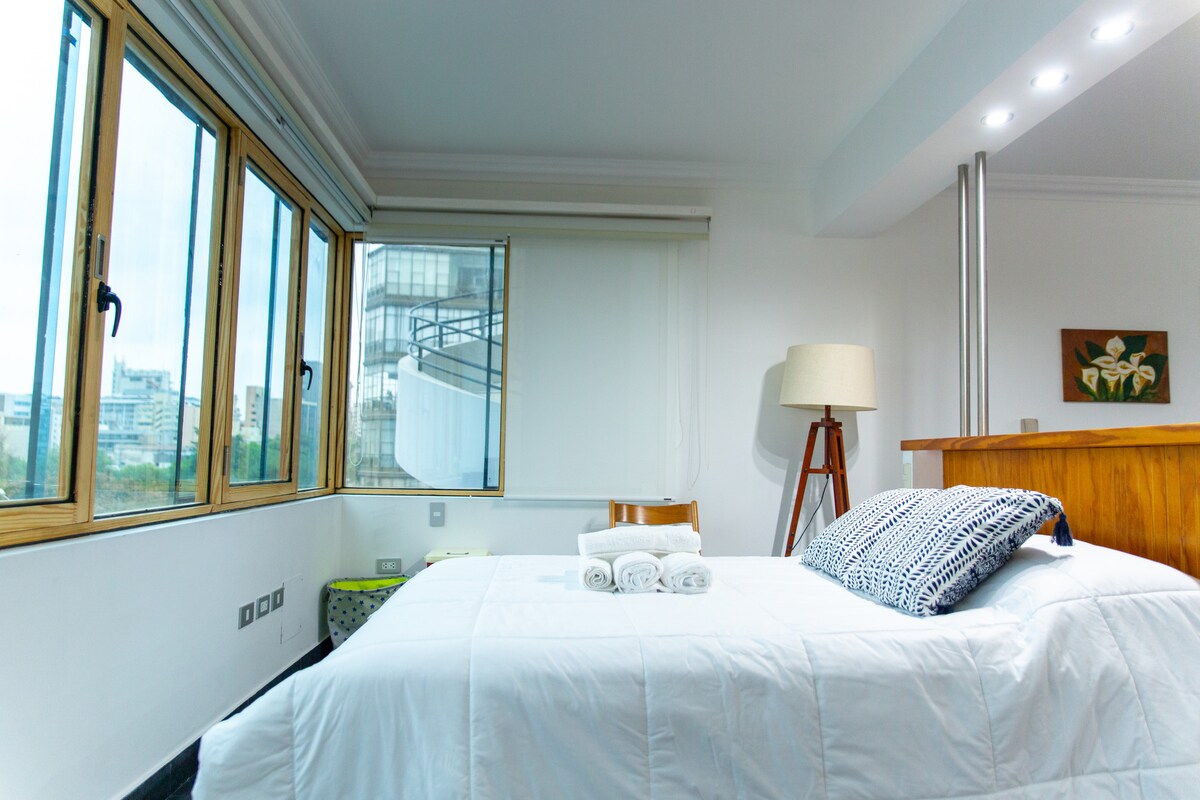 Այս մասնավոր լոֆթով կամ ստուդիայով բնակարանը կենտրոնական և ռազմավարական դիրք ունի Լիմայի Միրաֆլորես զբոսաշրջային և անվտանգ թաղամասում ։ Այն ունի 1 երկտեղանի մահճակալ, 1 մեկտեղանի մահճակալ և 1 թախտ: 1 զուգարան տաք ջրով, լիովին կահավորված խոհանոցիկ, գերարագ Wi - Fi, աշխատանքային տարածք, քաղաքի հանգիստ ներքին տեսարան, լավ լուսավորություն և օդափոխություն, 2 վերելակ, շուրջօրյա դռնապան, անկախ մուտք և բոլոր տեսակի ապրանքների և ծառայությունների խանութների մոտ: