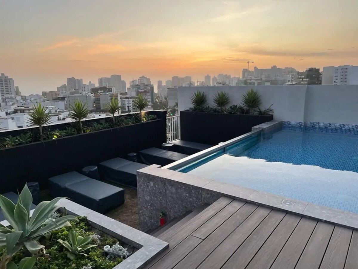 Roof Pool at Amazing Loft apt Barranco view w/ Gym