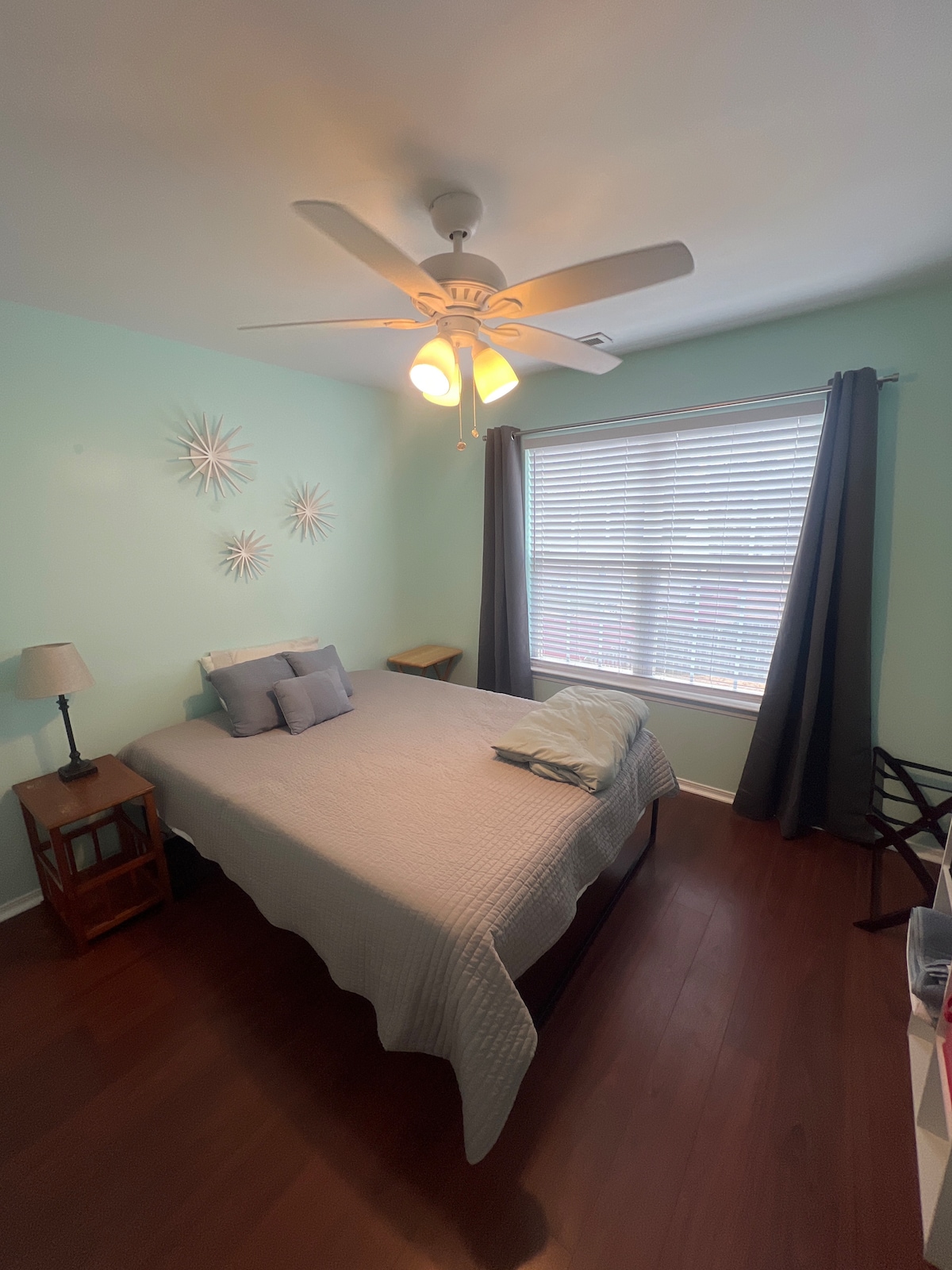 Բարի գալուստ Cozy Luxe Escape՝ ժամանակակից և նորաձև 2 սենյականոց հանգստի տուն, որը նախատեսված է հարմարավետության և հանգստի համար։ Վայելեք առավոտները նախամուտքի ճոճանակին նստած, դիտեք ձեր սիրած շոուները սմարթ հեռուստացույցով կամ կերակուր պատրաստեք լիովին համալրված խոհանոցում։ Այս խաղաղ տունը, որն ունի արագ Wi-Fi, գրասենյակային փոքրիկ անկյուն, ընտանիքի համար հարմար հարմարություններ և մինի ֆիթնես սարքավորումներ, կատարյալ է գործարար ուղևորների, զույգերի և ընտանիքների համար։ Րալիի կենտրոնից, Հյուսիսային Կարոլինա նահանգից, WakeMed-ից, Ուոլնաթ Քրիկից և տեղական տեսարժան վայրերից հաշված րոպեների հեռավորության վրա։