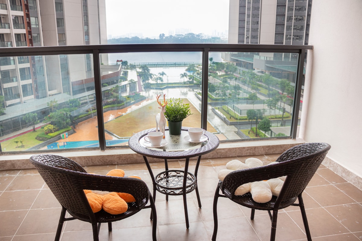 This is new listing: 20% DISCOUNT (the price shown is discount applied) - 8min walk to CIQ - breathtaking city and waterfront views. - fully equipped kitchen, and high-speed Wi-Fi. - Relax and take a dip in the infinity pool. - Perfectly located near CIQ for easy access to Singapore and close to attractions like Legoland. - Family-friendly amenities, a fitness center, and 24/7 security ensure a safe and comfortable stay. - Walk to R&F Mall and Immerse yourself to nearby markets and dining.