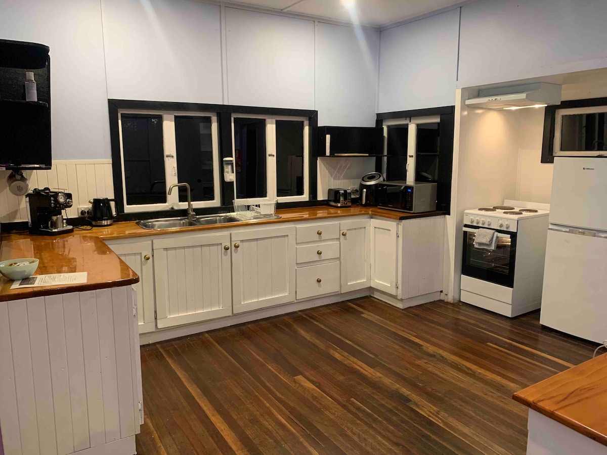 Դանդաղ տուն, որը գտնվում է հենց Էումունդիի սրտում, բայց շնչելու տեղ ունի... Քաղաքի կենտրոնից (հայտնի Eumundi շուկաների տուն) ընդամենը 300 մ հեռավորության վրա և ընդամենը 20 րոպե ճանապարհ դեպի Նոոսա, բայց դուք երբեք չեք իմանա այդ մասին: Դեպի ամբարտակ նայող և ծառերով ու վայրի բնությամբ շրջապատված ՝ բնության խաղաղ ձայները այն դարձնում են լիցքաթափվելու, հանգստանալու և վերամիավորվելու կատարյալ վայր...Դիտեք, թե ինչպես են վալաբիները ցերեկային ժամերին արածում բացօթյա լոգարանից կամ կրակարանից, կամ հարմարվում են ներսի բուխարիի կողքին ՝ լավ գրքով…