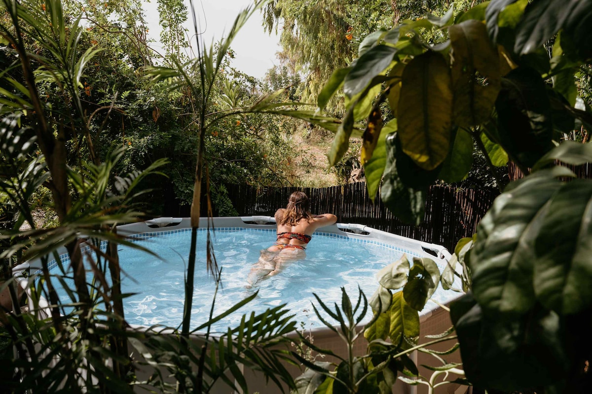 A geodesic dome located in an olive grove at the foot of the mountain in a private and quiet area. The house is wide, spacious, modern and special. There are strong ACs, a fully equipped kitchen, espresso machine, microwave, washing machine, an outdoor seating area with a BBQ, and a pool. The surrounding area is beautiful with natural springs and hiking trails. The Sea of Galilee is only a 10-minute drive away. This house was hand-built by us with love&care. We are happy to share it with you!