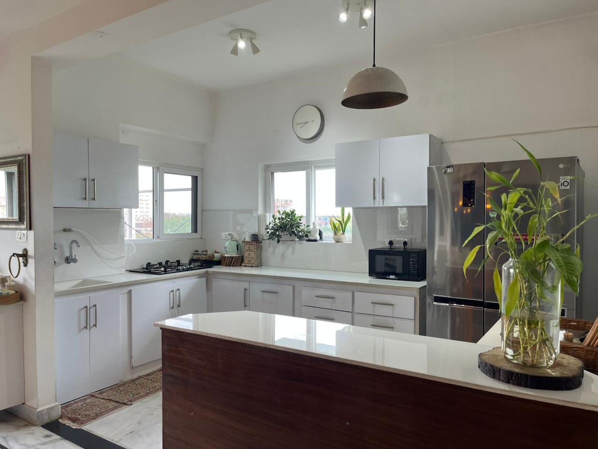 Բարի գալուստ The Terrace՝ ժամանակակից 2BHK, որը գտնվում է խաղաղ, կանաչ և շատ անվտանգ տարածքում։ Հարմար է ընտանիքների, զույգերի և միայնակ ճանապարհորդների համար։ Տունը օդանավակայանից 30–35 րոպե հեռավորության վրա է։ Հեշտ է Uber կամ Ola պատվիրել։ Մոտակայքում սննդի կետեր կան։ Սննդի առաքման բոլոր հիմնական հավելվածներն անխափան աշխատում են, և մենք ուրախությամբ կկիսվենք մեր լավագույն խորհուրդներով։ Դուք գտնվում եք GVK Mall-ից 20–25 րոպե հեռավորության վրա, մոտակա հիվանդանոցից՝ 2 րոպե հեռավորության վրա, հենց գեղեցիկ զբոսայգու կողքին, որտեղ կարող եք առավոտյան կամ երեկոյան զբոսնել։ Ինքնուրույն ժամանում՝ ձեր այցի ընթացքում լիակատար հարմարավետություն ապահովելու համար։