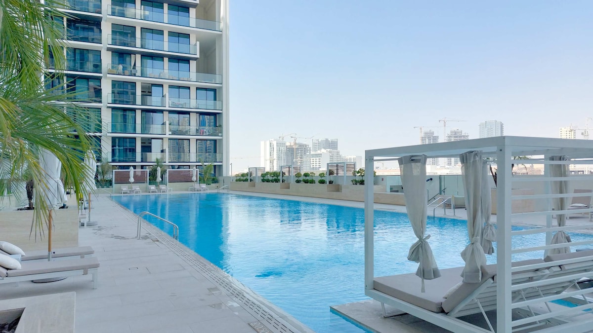Ցնցող շքեղ 1BR | Ժամանակակից ՝ լողավազանի տեսարանով | JVC