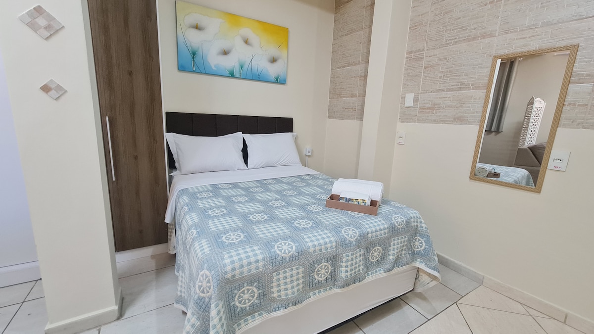 Դուք մոտ կլինեք ամեն ինչի ՝ ռեստորաններին, սուպերմարկետներին, առևտրի կենտրոնից 3 րոպե հեռավորության վրա (1,4 կմ) և 3 րոպե Parque da Uva - ից (1,3 կմ) Հարմարավետ 🛏️ մահճակալ ՝ անկողնային և լոգարանի սպիտակեղենով ։ ❄️ Օդորակում ՝ ձեր հարմարավետության համար ։ Արագ և կայուն📶 Wi - Fi, իդեալական է աշխատանքի կամ հանգստի համար ։ Ամբողջական 🍽️ խոհանոց ՝ գազօջախ, միկրոալիքային վառարան, սառնարան, հիմնական պարագաներ ։ 🏋️♀️ Մարզասրահ ։ 🏊 Լողավազան և սաունա ՝ հանգստի համար ։ ☕ Նախաճաշ (վճարվում է առանձին 34 R$) ընդունարանում: ⚡ Վարդակներ 220Վ 💙 Ամրագրեք հիմա և վայելեք անմոռանալի հանգիստ ։