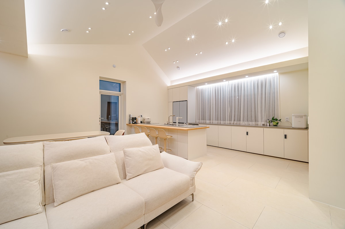 [Սոգվիպո, Չեջու] Մասնավոր կացարան՝ տեռասով և օվկիանոսի տեսարանով|Մասնավոր խորոված Մեր զբաղված առօրյայում մենք հաճախ Ես ապրում եմ օրվանով՝ մոռանալով նույնիսկ շնչել։ Երբ զբաղված եք աշխատանքով, ժամանակը սեղմում է, և ձեր միտքը հանգիստ չէ, առաջին բանը, որ ձեզ պետք է՝ Միգուցե ժամանակն է ոչինչ չանել, և միգուցե ժամանակն է դանդաղ շունչ քաշել։ «Սամը» տարածք է, որը ստեղծվել է հենց այդ մտքով։ Օրինակ՝ խորը շունչ քաշելը՝ նայելով Սոգվիպոյի հանգիստ ծովին, և դանդաղ արտաշնչումը Մենք ուզում էինք որոշ ժամանակով դադարեցնել այստեղ առօրյա կյանքի արագընթացը։ Սա մասնավոր կացարան է միայն մեկ թիմի համար, և այն խորհուրդ է տրվում նրանց, ովքեր ցանկանում են առանձին հանգստանալ։ Ընդարձակ պատշգամբում կարող եք խորոված անել՝ վայելելով ծովային տեսարանը։ Այն կատարյալ է ընտանեկան ուղևորությունների կամ փոքր հավաքների համար։ Վայելեք հարմարավետ և հանգստացնող ուղևորություն դեպի Չեջու՝ Սոգվիպոյի խաղաղ մթնոլորտում։