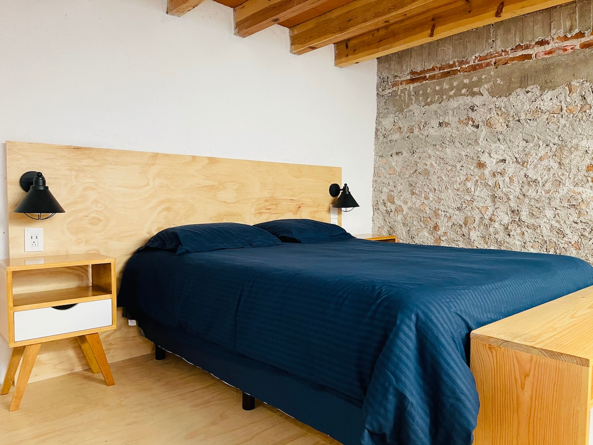 Disfruta Xamaika’a Loft, un espacio con diseño natural, artesanal y orgánico, ideal para descansar y reconectar. Ubicado en una zona céntrica, tranquila y segura de Querétaro, con fácil acceso a avenidas principales, restaurantes, supermercados y parques. Cuenta con una cama matrimonial y una segunda cama integrada que se habilita solo bajo solicitud previa, para adaptar el espacio a tu estancia. Ideal para parejas, amigos o grupos pequeños que buscan una experiencia diferente a lo convencional.