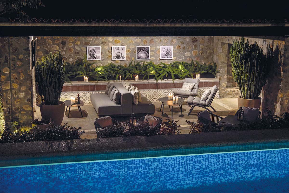 Single-story, two-bedroom, fully furnished elegant residences of 1,940 sq-ft include 2 full baths, equipped kitchen, an outdoor private terrace overlooking interior gardens, among others luxury features. The master bathroom includes paired sinks, a clear tempered glass shower enclosure, a travertine fiorito marble on floor, shower walls and countertops, all working together to give the space style and functionality.