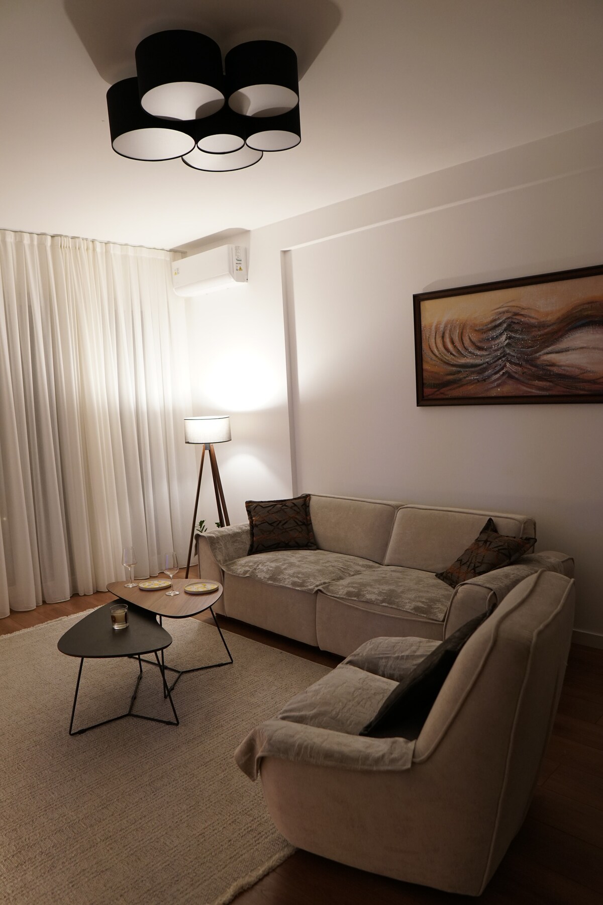 Մեր նոր օդորակիչի շնորհիվ կզգաք ձեզ հարմարավետ։ Պրիշտինայի սրտում, գլխավոր հրապարակից ընդամենը 10 րոպե հեռավորության վրա, այս լուսավոր բնակարանը ունի մեծ պատշգամբ՝ դեպի քաղաք բացվող տեսարանով, երկու ժամանակակից լոգասենյակ, երեք հարմարավետ մահճակալ, լիովին կահավորված խոհանոց և ընդարձակ հյուրասենյակ՝ հարմարավետ բազմոցներով և 42 դյույմանոց հեռուստացույցով՝ Smart Box-ով (Netflix, Hulu, Music) Հարմար է հանգստանալու, ուսումնասիրելու կամ հեռավար աշխատելու համար՝ հարմարավետ և ոճային։