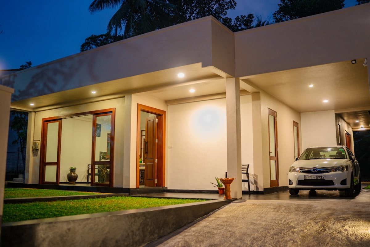 Մեր հարմարավետ ննջասենյակներն ունեն կից լոգասենյակներ, և այս խաղաղ ընտանեկան տունը իսկական գյուղական զգացողություն ունի: Մենք շրջապատված ենք Սինհարաջայի անձրևային անտառով ։ Ջին գետը հոսում է մեր հետևից, իսկ տան դիմաց գտնվող դաշտերը ձեզ տալիս են զով բնական զգացողություն ։ Դուք կարող եք վայելել սինհալայի համեղ կերակուրները, որոնք պատրաստվում են հատկապես ձեզ համար: Կա մի գեղեցիկ ջրվեժ, որով կարող եք քայլել մոտակայքում, որտեղ երեկոյան հաճելի զբոսանք է, և մեզ շրջապատող տարածքը լի է թռչունների երգով և վայրի բնությամբ:
