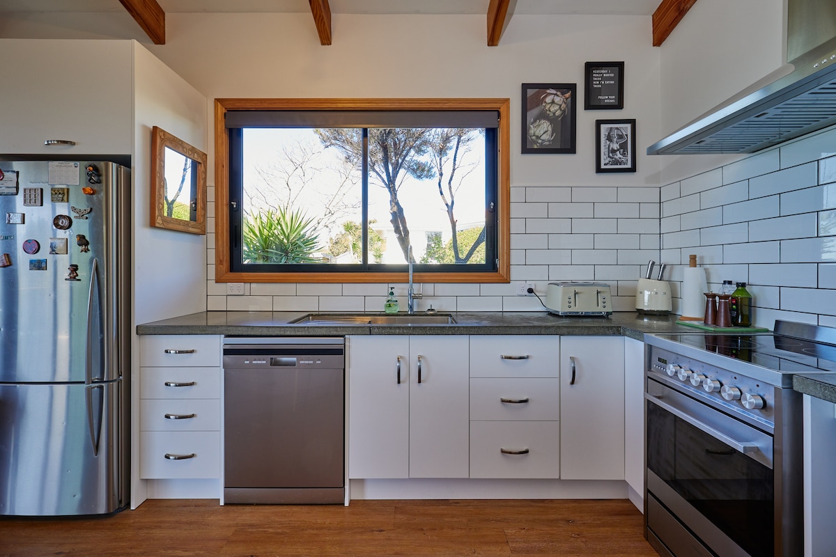 Ժամանակակից, հարմարավետ հանգստյան տուն ՝ լեռնային տեսարաններով, թերակղզում ՝ Սաութ Բեյի և քաղաքի միջև ։ Վայելեք խաղաղությունը ՝ գտնվելով Կաիկուրայի ցանկացած վայրից ընդամենը մի փոքր հեռավորության վրա ։ Տունն ունի լիովին կահավորված խոհանոց, հարմարավետ մահճակալներ, անվճար Wi - Fi, տախտակամած և բավականաչափ փողոցից դուրս կայանատեղի ։ Դուք վարձակալելու եք տան ընդարձակ դիմացի կեսը ՝ երկու հարկաբաժինները միացնող լվացքատան ընդհանուր մուտքով ։
