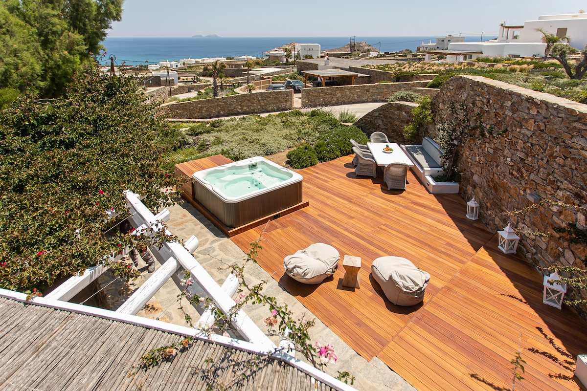 At Villa Calypso Sunset, the Aegean sea unfolds in sweeping views, sunsets paint the horizon, and a hot tub by the infinity pool invites pure relaxation—an intimate, stylish sanctuary just steps from the sea. Oriented toward the island’s most remarkable sunsets, the villa features refined interiors and expansive outdoor living, highlighted by an infinity pool and a hot tub overlooking the Cycladic islands of Delos, Syros, and Tinos.