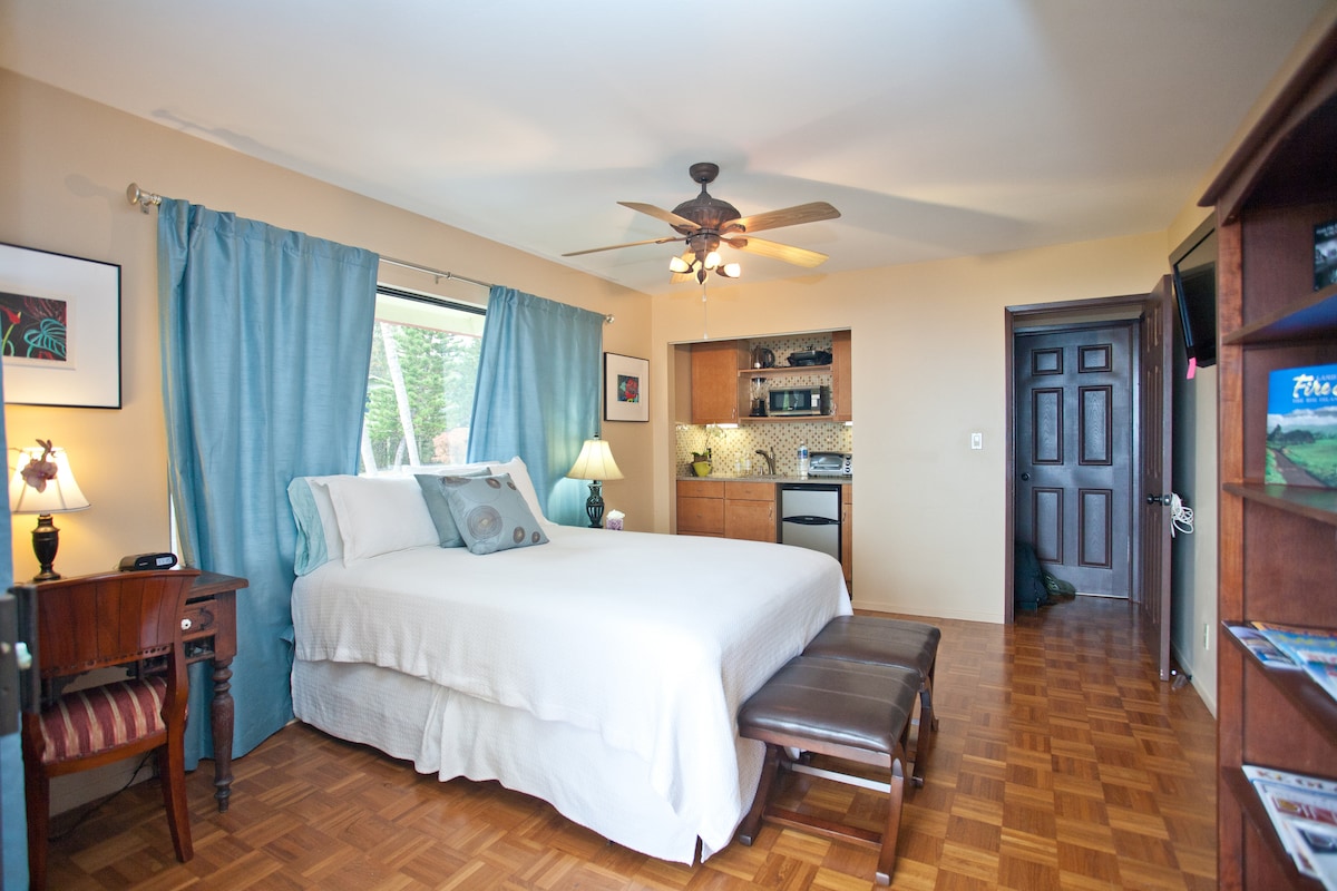 Կոնա միջազգային օդանավակայանից ընդամենը 10 րոպե հեռավորության վրա գտնվող այս մասնավոր ստուդիան գտնվում է Բիգ Այլենդում ձեր արկածների մեկնարկի համար կատարյալ վայրում։ Տարածքը լուսավոր է և օդային՝ ֆրանսիական դռներով, որոնք բացվում են դեպի լանայ՝ ստեղծելով ավելի ընդարձակ տարածության զգացողություն։ Կա զգեստապահարան, մասնավոր լվացքի մեքենա և չորանոց, հիմնական հարմարություններ, 65 դյույմ անկյունագծով սմարթ հեռուստացույց և USB վարդակներ։ Կա 150–179 սմ մահճակալ և հարմարավետ բազմոց։ Ժամանակավոր կացարանների լիցենզիա TA-018-066-6368-01