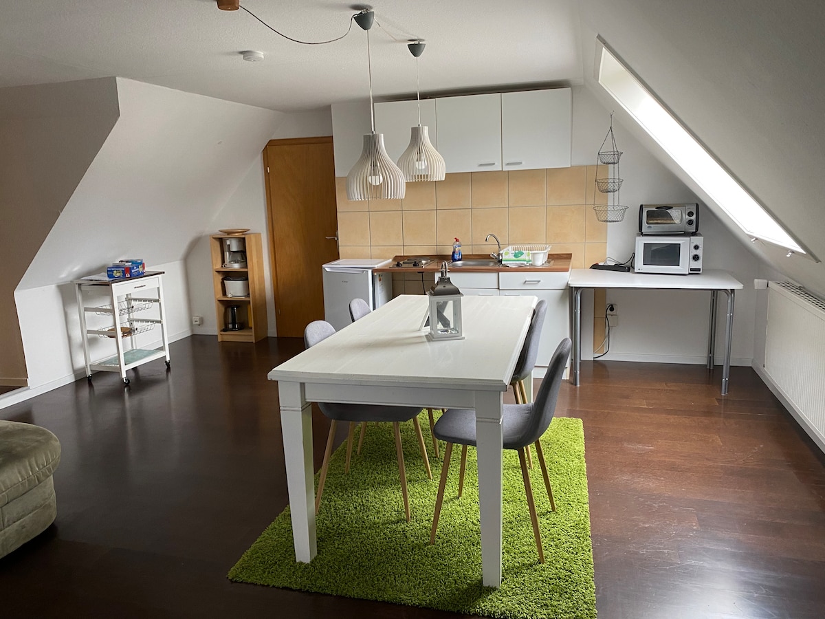 Բարի գալուստ մեր տուն ։ Մենք վարձակալում ենք հարմարավետ և մեծ ո******ր կամ հյուրասենյակ ՝ տան առաջին հարկում գտնվող խոհանոցով և լոգասենյակով ։ Բնակարանը գտնվում է Ֆուլդա - Կոհլհաուս թաղամասում ։ Ավտոկայանատեղերն անվճար են փողոցի վերևում ։ Մեքենայով մոտ 10 րոպեից կլինեք քաղաքի կենտրոնում, բայց կարող եք նաև ավտոբուսով գնալ ։ Կանգառը գտնվում է բնակարանից մոտ 8 րոպե հեռավորության վրա ։ Գնումները լավ են Kaiserwiesen առևտրի կենտրոնում: Ոտքով ՝ մոտ 18 րոպե ։