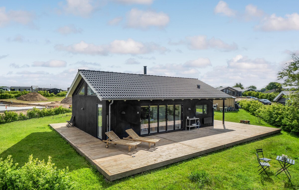 Experience enchantment at our unique summerhouse, overlooking one of Denmark's most breathtaking views. With its 180-degree panorama, the terrace offers year-round sunsets and huge windows flood the interior with natural light. Unwind in the hot tub, challenge each other to table tennis, or bounce on the trampoline. Just a 10-minute stroll away, the beautiful stone beach beckons. Our house, embraced by nature and brimming with art, promises an extraordinary retreat.