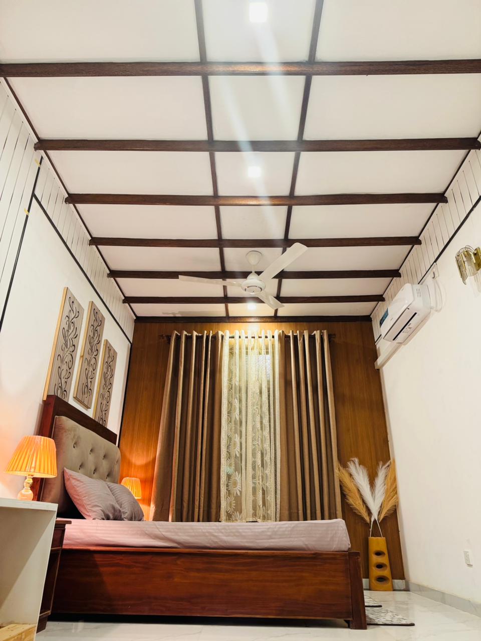 Second Floor two rooms with rooftop pool (12'X6') with Jacuzzi Ground floor two vehicle parking area Full air-conditioning two lockable rooms available Shared bath room with hot water shower Kitchenette with Refrigerator, Microwave ,Electric Kettle, LP Gas burner with cylinder and all other needs Four seat Sofa, Four seat dining table, TV, pedestal fan include in living area Environment: House owner living in same land Back side land is a Buddhist Temple(half an hour two mass per day)