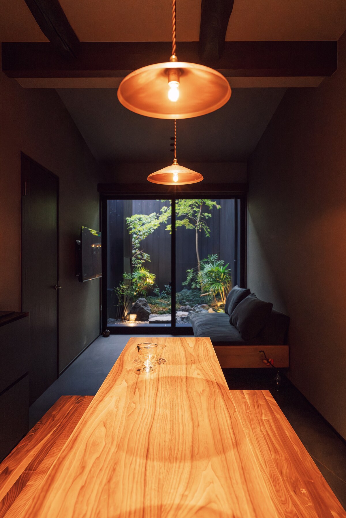 Բակ մտնող փափուկ լույսը լուսավորում է հարյուրամյա Կիոտոյի քաղաքային տունը։ Խորհուրդ է տրվում նրանց, ովքեր ցանկանում են Կիոտոյում մնալ որպես տեղացի՝ հեռու զբոսաշրջային ուղղությունների աղմկոտ շշնջից։ Այս թաունհաուսը վարձակալվում է ամբողջությամբ, այնպես որ կարող եք հանգստանալ ընտանիքի և ընկերների հետ՝ չանհանգստանալով այլ հյուրերի մասին։ Հյուրատան որոշ պատեր մենք էինք հարդարել, իսկ ինտերիերը մենք էինք ընտրել։Հնաոճ վիտրաժները, Իսամու Նոգուչիի ճապոնական թղթե լուսավորությունը, Simmons մահճակալները, Muji սպիտակեղենը և այլն ստեղծված են այնպես, որ հյուրերն իրենց զգան ինչպես տանը։Կարող եք զգալ հին Կիոտոյի տեսարանը, ինչպես այն է։ Բակից ներթափանցող մեղմ լույսը և ստվերը հանգիստ պատմում են Կիոտոյի թաունհաուսի կյանքի պատմությունը, որն ավելի քան հարյուր տարեկան է։ Քաղաքի աղմուկից հեռու գտնվող այս սեփականությունը խորհուրդ է տրվում այն ճանապարհորդներին, որոնք ցանկանում են Կիոտոյում ապրել և այն զգալ տեղացու պես։ Այս թաունհաուսը վարձակալվում է ամբողջությամբ, այլ հյուրերի հետ տարածքը համատեղ օգտագործելու կարիք չկա, Կարող եք հանգիստ ժամանակ անցկացնել ընտանիքի կամ ընկերների հետ։ Մենք ինքնուրույն կվերանորոգենք տան ներքին պատերը։ Մենք մանրազնին ընտրում և դասավորում ենք սենյակի բոլոր կահույքն ու զարդերը։ Հնաոճ վիտրաժներ, Յուսուկե Նոգուչիի կողմից նախագծված ճապոնական թղթե լամպեր, Simmons ներքնակ և Muji անկողնային պարագաներ, Ամեն մանրուք նպատակ ունի հյուրերին տան ջերմությունն ու ապահովությունը պարգևելու, որպեսզի նրանք հանգիստ վայելեն Կիոտոյի յուրահատուկ մթնոլորտը։