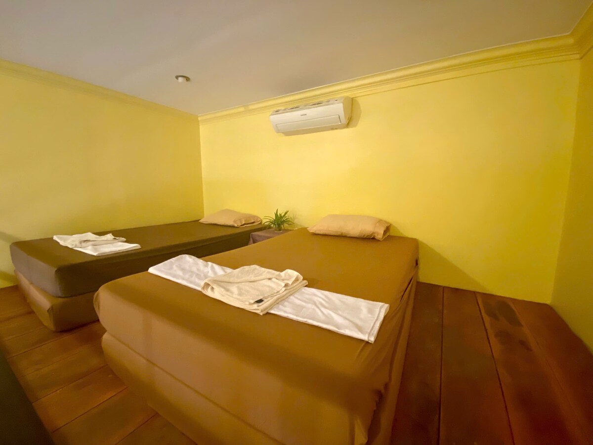 Derm Svay offers a green, social stay with cozy mezzanine rooms, well-equipped kitchens, air conditioning, and hot water showers. Our lush garden is perfect for relaxing in a hammock, enjoying morning yoga, or connecting with other guests. We have books to borrow, games to share, and a friendly atmosphere that feels like home. In the evenings, gather around the BBQ or firepit for good food and conversation. Just a 1-minute walk from the beach, it’s your perfect Kampot escap