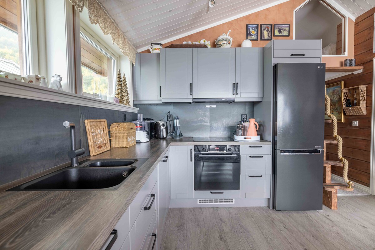 Մոտ 60 քառակուսի մետր տնակ՝ 2 ննջասենյակով և ձեղնահարկով։ Անձնական խոհանոց սպասքով։ Քոթեջը գտնվում է խաղաղ տարածքում ևս 3 խցիկով։ Շալեն գտնվում է մասնավոր ճանապարհի վերջում, և տարածքը հանգիստ ու խաղաղ է։ Տնակում կա խորովածի տեղ՝ ֆյորդում մայրամուտով հաճելի երեկոներ անցկացնելու համար։ Հյուրասենյակում կա բուխարի և փայտ, որը կարելի է օգտագործել, եթե ցուրտ լինի։ Յուրաքանչյուր սենյակում կա նաև էլեկտրական ջեռուցում։ Անկողնային սպիտակեղենը և մաքրումը ներառված են գնի մեջ ։