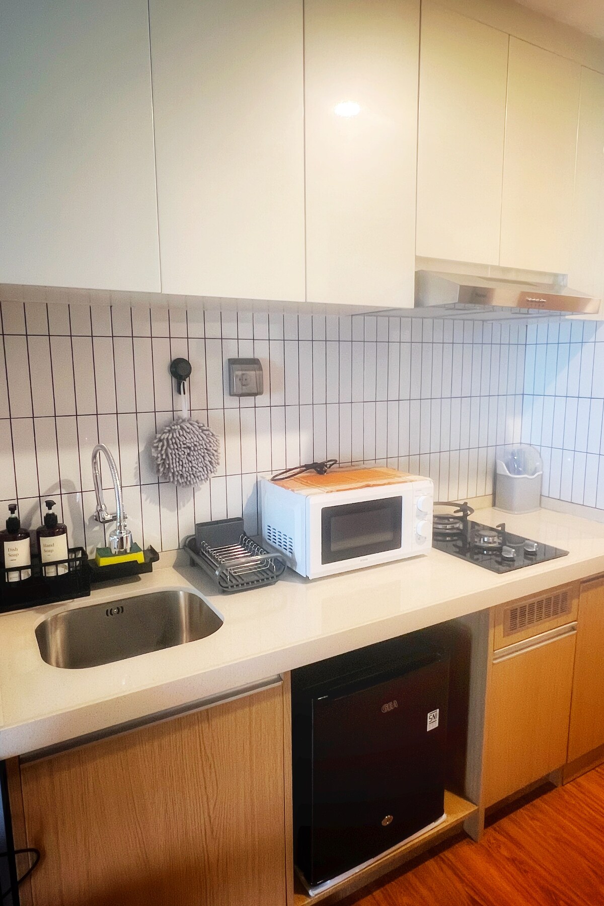 Ընդարձակ, հարմարավետ 1 ննջասենյակով բնակարան ՝ հյուրասենյակով և պատշգամբով, Արևմտյան Ջակարտայի իդեալական լճի ափին գտնվող Citralake Suites - ում ։ Հարմարավետորեն տեղակայված լինելով օդանավակայանից, PIK - ից, Puri Indah - ից և Sunset Avenue - ից ընդամենը մի քանի րոպե հեռավորության վրա ՝ հեշտ է ուսումնասիրել քաղաքը ։ Դուրս եկեք և ոտքով ընդամենը 1 րոպե հեռավորության վրա եք գտնվում Ciffest - ից ՝ աշխույժ ճաշասենյակից, որտեղ կան սննդի բազմաթիվ տարբերակներ, սուպերմարկետներ և բանկոմատներ ։ Մեր 1 BR հարկաբաժինը տրամադրում է շքեղ և հարմարավետ տարածք մինչև 3 հյուրի համար ՝ խոհանոցիկով, անվճար Wi - Fi - ով և Netflix - ով ։