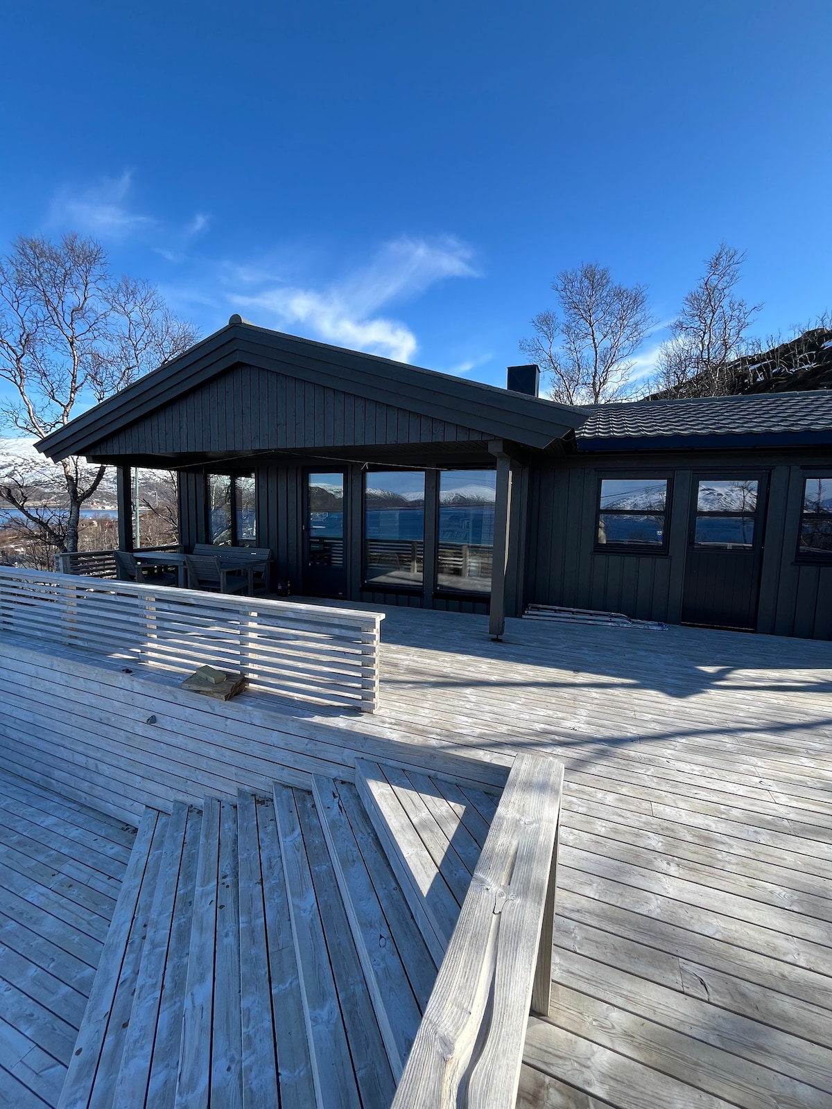 Առանձնացված տնակ ֆյորդի մոտ, Տրոմսյոյից 1,5 ժամ հեռավորության վրա, անվճար շոգեբաղնիքով, ջակուզիով և բոլոր պարագաներով: Գտնվելով զարմանալի ֆյորդում՝ այն կատարյալ է ձմռանը հյուսիսային լույսերից կամ ամռանը կեսգիշնային արևից վայելելու համար՝ շրջապատված հանգիստ լռությամբ: Վայելեք ձկնորսությունը, արշավները, որսը, դահուկավազքը կամ հանգստացեք բուխարիի կամ խարույկի շուրջ: Ձմեռային արկածների համար հասանելի են անվճար պրեմիում թրագերներ, մեկուսացված սահնակներ, գլխի լապտերներ և կոշիկների սեպեր: Իդեալական է հյուսիսային լույսերի որսորդների համար, ովքեր կարոտում են բնությունը և հարմարավետությունը: