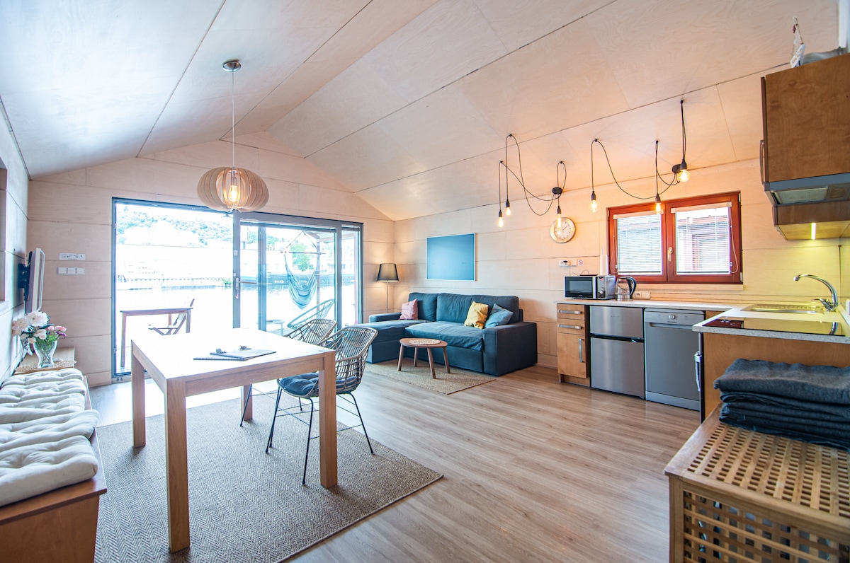 Ձեզ դուր կգա այս յուրահատուկ, ռոմանտիկ հանգիստը ։ Բացարձակապես հմայիչ տուն - նավակ, որը պատրաստված է մանրուքների և հարմարավետության նկատմամբ մեծ խանդավառությամբ ։ Դուք անմոռանալի այց կունենաք և չեք ցանկանա մեկնել ։ Կարող եք ձուկ որսալ կամ պարզապես դիտել ձկներով լի գետային աշխարհը կամ փորձել թիավարման տախտակ ։ Տուն - նավակը հագեցած է երկտեղանի մահճակալով և փոքր մանուկների համար նախատեսված օրորոցով ։ Դուք կպատրաստեք ձեր համտեսի փորձառությունը լիովին կահավորված խոհանոցում: Ամբողջ օրը մեկնելուց հետո հանգստացեք բուխարիի մոտ ։ Դուք կնստեք տախտակամածի վրա և կհետևեք ջրի մակարդակի հանգստությանը ։ Կայանատեղ ՝ անմիջապես տուն - նավակի կողքին ։