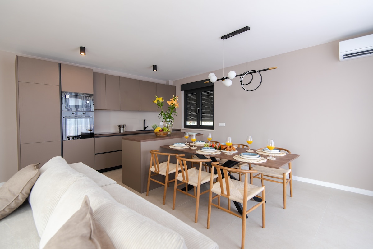 Գեղեցիկ պարտեզին նայող մեծ կտուրով այս բոլորովին նոր հարմարավետ բնակարանը լիովին հագեցած է ժամանակակից գործիքներով, որոնք համապատասխանում են ձեր բոլոր կարիքներին: Գտնվում է երկու պատմական քաղաքների միջև ՝ Սպլիտից 13 կմ և Տրոգիր 8 կմ հեռավորության վրա, իսկ օդանավակայանին մոտ ՝ ընդամենը 2 կմ հեռավորության վրա ։ Հարմար է ընտանիքների, ընկերների և բիզնես ուղևորների համար ։