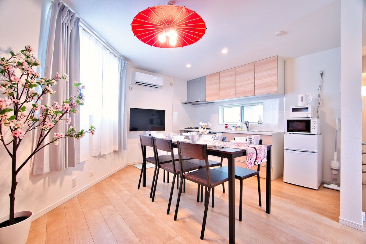 Կամեյի կայարան 9 րոպե | 2 ննջասենյակ + խոհանոց | 34 ¥ | Մինչև 4 հոգի | Լիովին հագեցած Wi - Fi - ով
