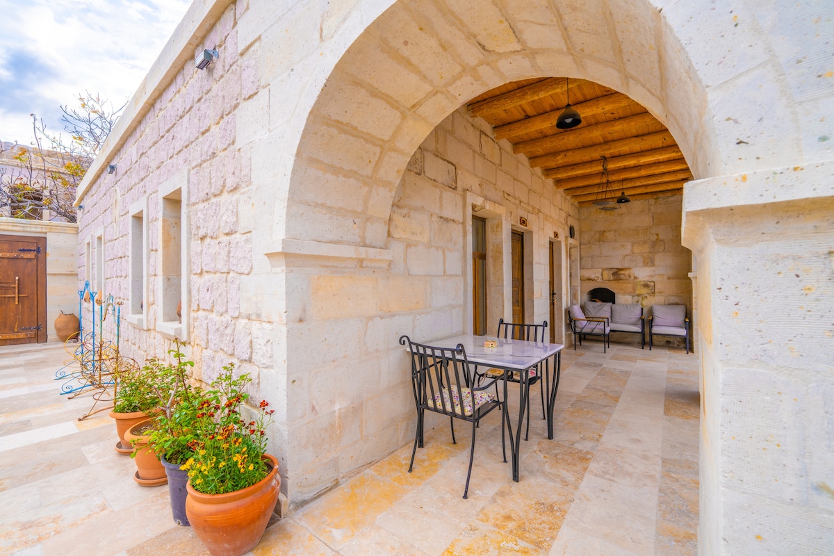 Յուրահատուկ կացարան Կապադովկիայի Ուրգյուպ թաղամասում գտնվող պատմական և բնական քարե կամ քարանձավային կառույցների միջև ։ Փոքր գումարով կարող եք վայելել մեր խառը թուրքական նախաճաշը մեր տեռասում: Ցանկության դեպքում կարող եք երեկոյան նստել տեռասի տարածքում և դիտել Ürgüp - ի հիասքանչ տեսարանը և խաղաղություն գտնել: Տարածքը բաղկացած է մեծ երկտեղանի մահճակալից և ավելի փոքր երկտեղանի մահճակալից (140x200) և կարող է տեղավորել 4 հոգու ։ Հիանալի ընտրություն երեխաներ ունեցող ընտանիքների համար ։