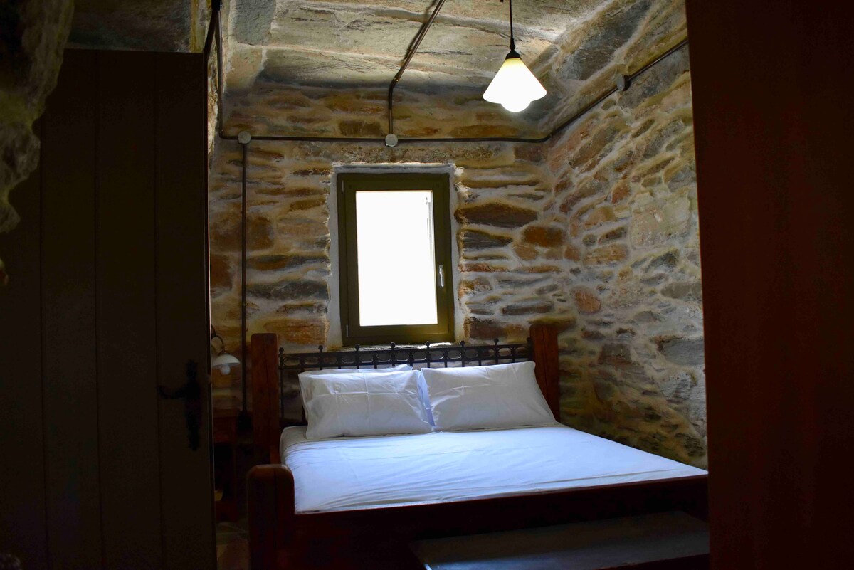 A traditional 55m2 stone house, surrounded by verandas and vast gardens, including a barbecue installation. only 650 m (10 min. walking) from the spectacular beach of Otzias, in a quiet enviroment deep in nature.