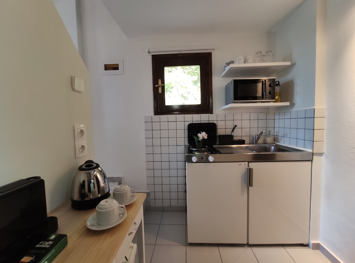 Այս մասնավոր լյուքս ստուդիան գտնվում է առաջին հարկում ՝ ծաղիկներով և պտղատու ծառերով շրջապատված գեղեցիկ նստած հետնաբակով ։ Մի քանի քայլից/վայրկյանից դուք գտնվում եք Կոկկարի գյուղի գլխավոր հրապարակում, նավահանգստում, լողափերում, ռեստորաններում, բարերում, հուշանվերների խանութներում, դեղատանը, մթերային խանութում, հետնապահ խանութում, վարձով տրվող մեքենաներում, մոտոցիկլետներում, սկուտերներում, բանկոմատներում, ավտոբուսի կանգառում և անվճար կայանատեղերում: Այն վերանորոգվել է 2020 թվականին և նախագծված է ավանդական - ժամանակակից ճաշակով ։ Ճարտարապետությունը յուրահատուկ է և բնական ։