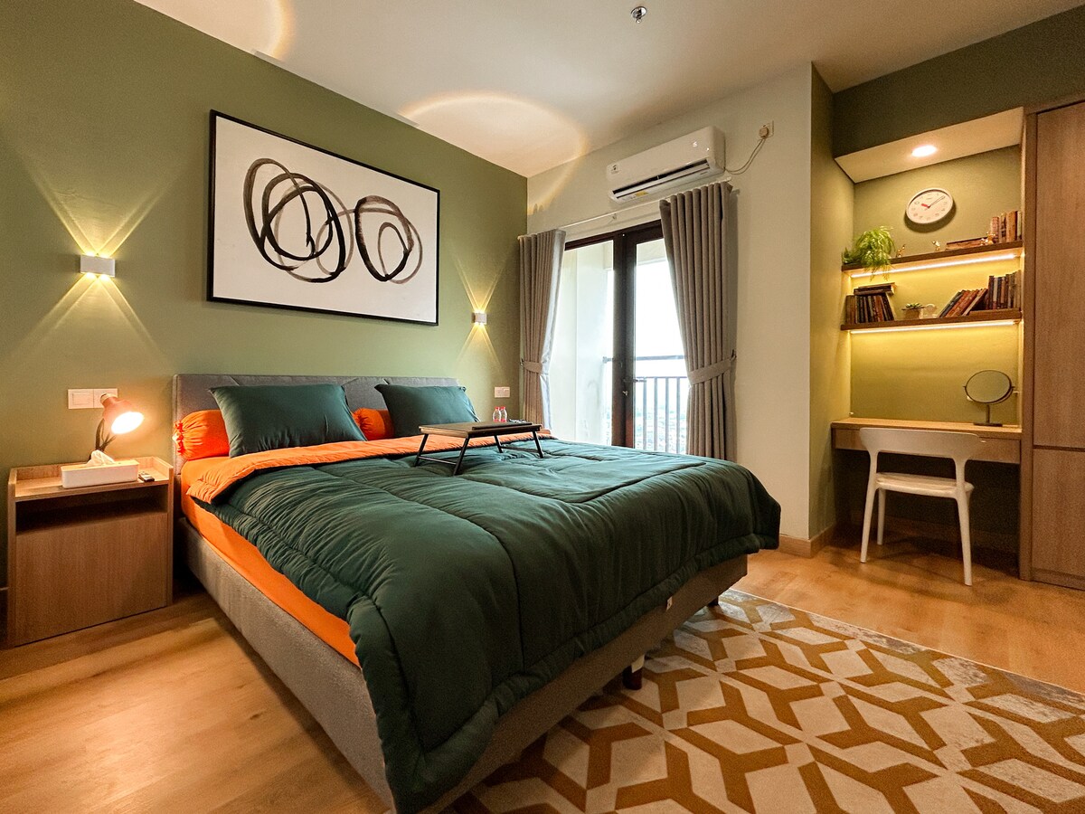 Հանգստացնող ձիթապտղի երանգներով, ջերմ լուսավորությամբ և հանգստի հրավիրող հարմարավետ մահճակալով այս տարածքը կատարյալ է բիզնես ուղևորների, թվային քոչվորների կամ քաղաքում խաղաղ հանգստի ձգտող զույգերի համար ։ Ինչը ձեզ դուր կգա ՝ • Հարմարավետ մեծ մահճակալ • Գերարագ Wi - Fi • 65 դյույմանոց սմարթ հեռուստացույց ՝ Netflix - ով • թարմ սրբիչներ և 2 - ը 1 ցնցուղի գել • Բազմաբնակարան համալիրում հասանելի վճարովի կայանատեղի Parkir 5k/jam և 30k/malam