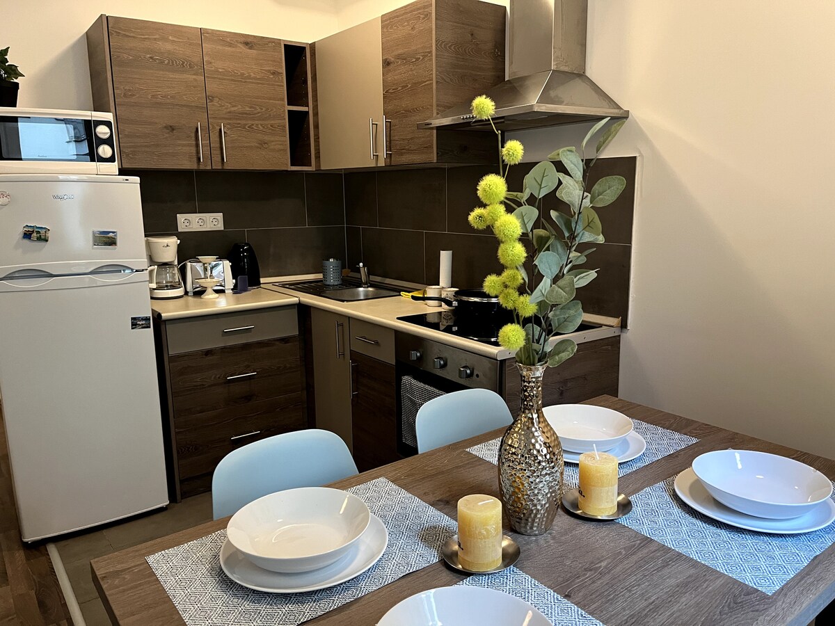 Նոր վերանորոգված ստուդիա Քելետի երկաթուղային կայարանի մոտ՝ դեպի հանգիստ բակ նայող, երկրորդ հարկում։ Գերազանց տրանսպորտ (գնացք, ավտոբուսներ, մետրո) դեպի բոլոր զբոսաշրջային ուղղությունները։ Ընդամենը մի փոքր հեռավորության վրա է քաղաքի կենտրոնից։ Արենա Պլազայի մոտակայքում։ Քաղաքային զբոսայգու, Հերոսի հրապարակի, Սեչենյի ջերմային բաղնիքի և թանգարանների մոտակայքում։