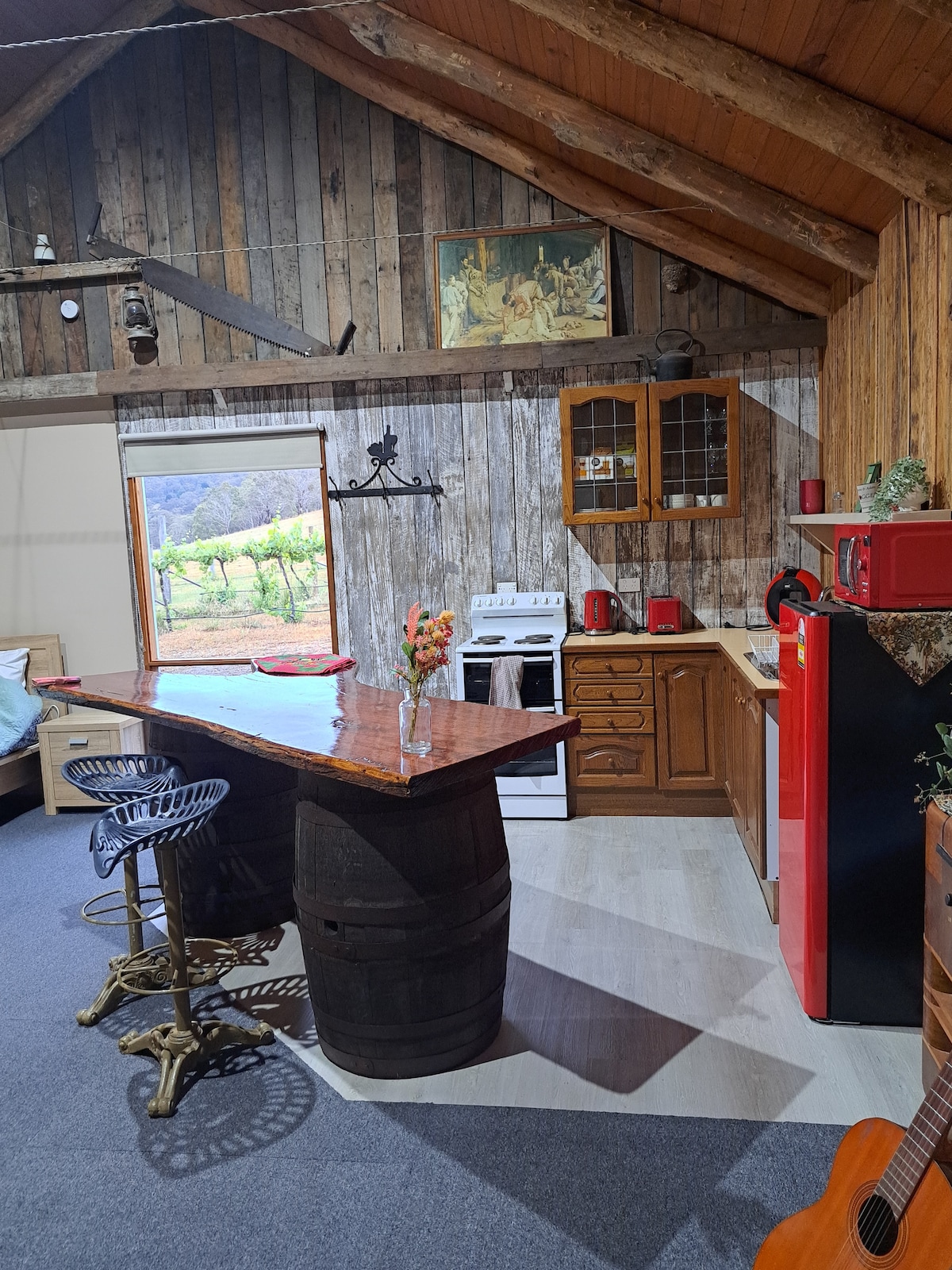 Cozy Cottage is a lovingly restored original settlers cottage. This tasteful restoration is in harmony with the homely, snug feel of the original. The antiques blend with the mod cons and luxuries of the well equipped kitchen (of course WiFi, TV, mobile reception are available) The cottage has soul and is a perfect place to getaway, relax and unwind, be that in front of a warm soothing fire or soaking in the tranquil pastoral views on the expansive deck whilst enjoying a BBQ, wine or coffee
