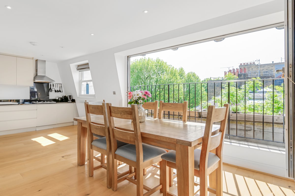 Պայծառ, խաղաղ բնակարան տերևոտ Համմերսմիթում ։