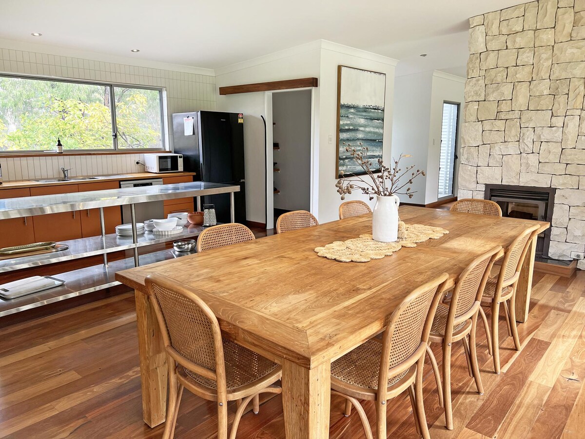 Come and stay in our beautiful home we have acres for you to wander around and enjoy. Our 5 bedroom home can sleep up to 10 people it has an amazing playroom for kids, a pot belly in the large lounge with a pot belly fire will keep you warm on the cool nights. Watch the sunset over the beautiful view of the dam and into the valley. Only 15 minutes from town and 5 minutes to the famous Greens pool. We are just off the main tourist route of wineries, alpaca farm, cheese factory and much more.
