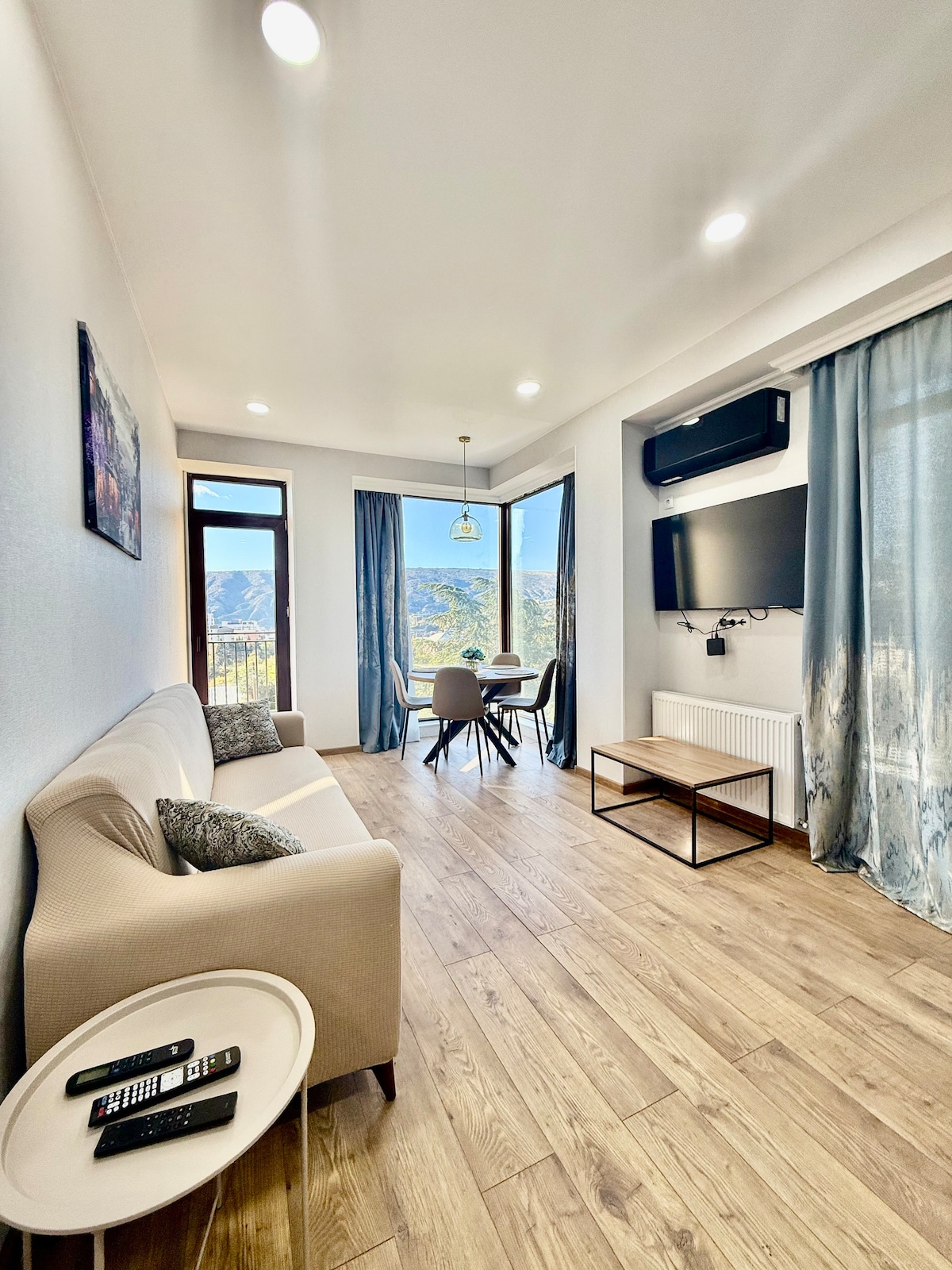 Ժամանակակից բնակարան Հին Թբիլիսիում ՝ քաղաքի տեսարաններով ։