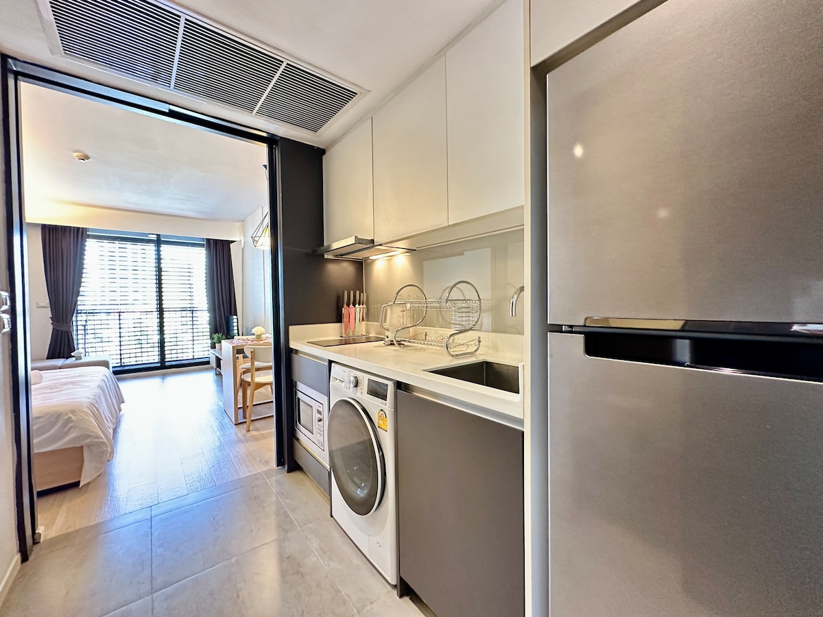 Բարձրակարգ թաղամաս, Thonglo երկաթուղային կայարանից 400 մետր հեռավորության վրա, մեկ սենյականոց բնակարան, լոգարանով, ջեռոցով և չորացնող սարքով, ամսական վարձակալություն, Crypto հատուկ առաջարկ
