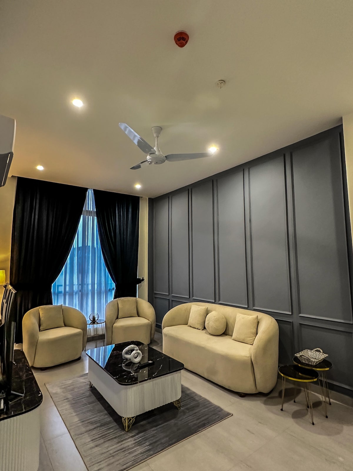Marrakesh Two. First Airbnb designed for Overseas Pakistanis returning home. Floor-to-ceiling windows, plush furnishings, and a calm neutral palette create a warm yet international standard of living. ☕️ Enjoy spacious lounges, a modern kitchen, ano serene bedrooms with balcony views Perfect for families seeking both luxury and familiarity in the heart of Pakistan 🇵🇰 Located just 7 minutes from Phase 7 Food Street, guests can enjoy a vibrant mix of local and international dining. 🍲