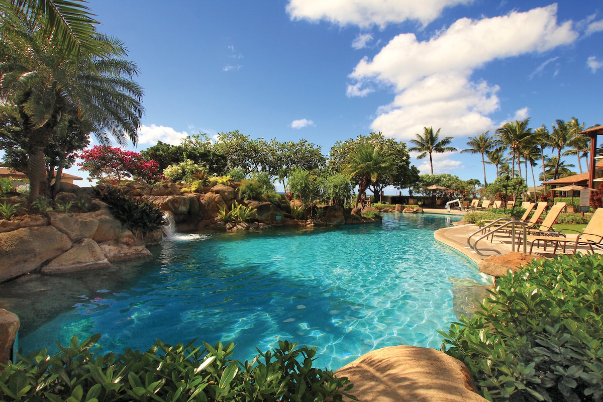 Tucked away in the natural beauty of Kauai’s southern tip, this vacation retreat offers a dream escape overlooking the stunning Shipwreck Beach. Surrounded by lush landscapes, it features spacious two-bedroom suites with full kitchens, a fitness center, tropical gardens, and a serene pool—perfect for unwinding under the Hawaiian sun after a day of adventure.