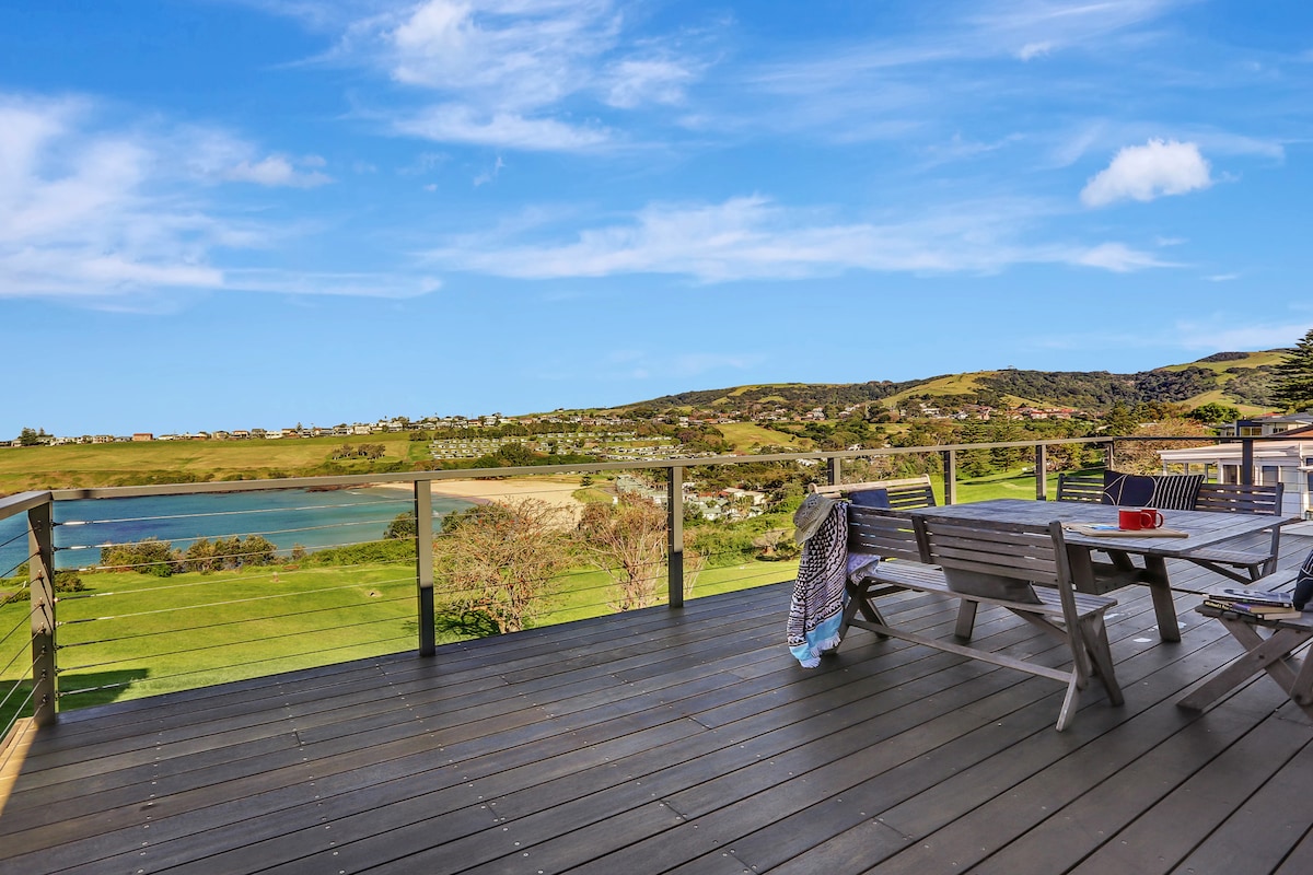 Wake up to uninterrupted ocean views, step off the back deck and you're at Easts Beach! Sleeps 8 across three bedrooms, with polished timber floors, a fully equipped kitchen, large deck with BBQ, fast Wi-Fi and a games room (ping pong anyone?). All linen provided — arrive and switch off. Walk to the blowhole, harbour, cafes and restaurants in minutes. Whether it's a family getaway or a weekend with friends, this is coastal living at its best. The perfect South Coast escape.