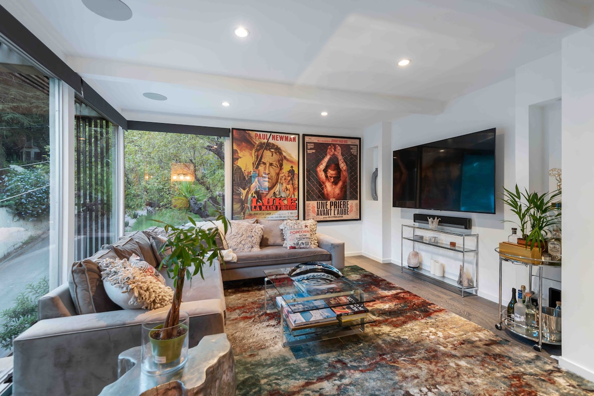 See our new VIDEO TOUR on splash page of the STUDIO 1080 HOLLYWOOD website. OUR REVIEWS SAY IT ALL!Hollywood Hills getaway w/ BREATHTAKING VIEWS @ 1080 feet above sea level. You'll love Sonos sound & automated shades. Enjoy new Espresso Bar & hanging wardrobe. This high-end studio offers premium amenities, with espresso machine, microwave, Sub-Zero fridge, dedicated HVAC, & 55" 4K Smart TV. Alexa controlled lights/music/blackout shades. UPDATED 2024 LADBS code compliance License # HSR24-002592