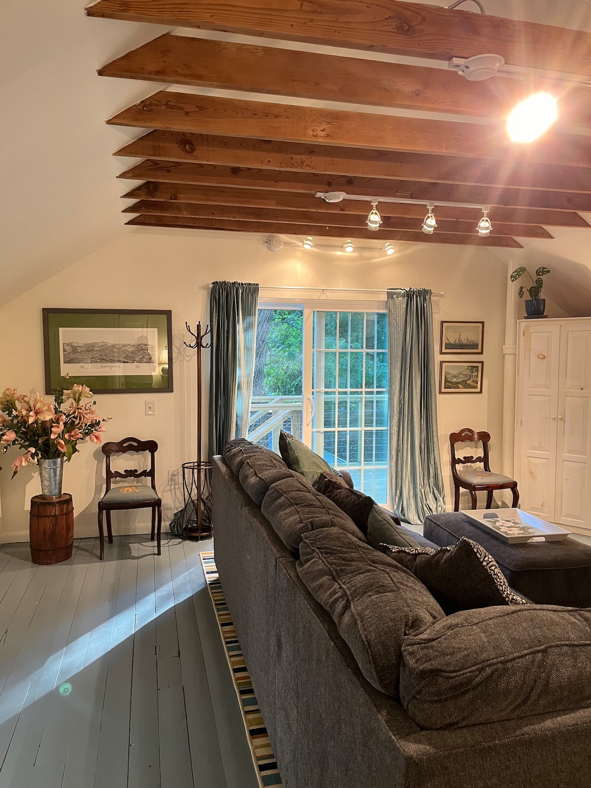 Looking for all the perks of a hotel while staying at a house in the country? This tranquil, light filled room overlooks horse pastures and a dirt road in the heart of Old Chatham hunt country. A private entrance leads to a guest suite which includes a queen size bed, sitting area, kitchenette, and walk-in closet. Located on the first floor of a newly built, net-zero home. Power comes from solar and solar water panels provide for guilt-free hot showers! 50 MBPS fiber optic Internet!