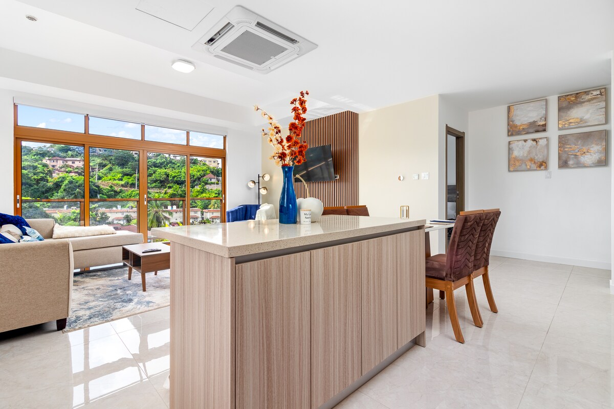 Welcome to HomeAway Kingston, a luxury retreat in the heart of Liguanea. This thoughtfully designed apartment blends modern comfort with warm, natural touches to create a calm and stylish escape. Enjoy beautiful mountain views, a relaxing private balcony, and access to a stunning rooftop pool and modern gym. Just minutes from US Embassy, restaurants, and shopping, the location offers the perfect balance of convenience and tranquility for business or leisure travelers. 24hr security.