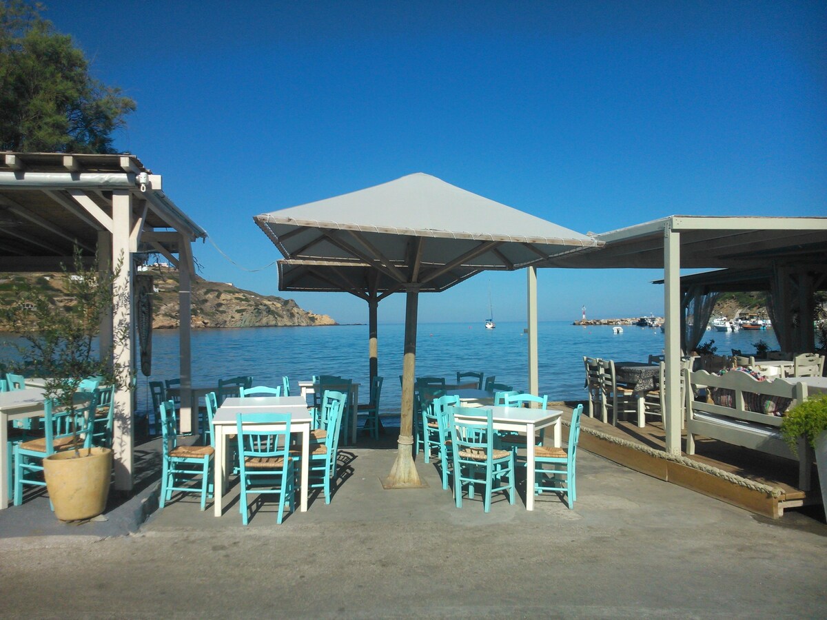 Լիովին կահավորված մեկ սենյականոց բնակարան ՝ ճակատային ծովի տեսարանով: Մեկ երկտեղանի մահճակալ ննջասենյակում, լիովին կահավորված խոհանոց (ջեռոց, սառնարան, ամանալվաց մեքենա, 4 փոս), լոգասենյակ ՝ լոգարանով , լվացքի մեքենա, առանձին տեռաս ՝ աթոռներով և սեղանով ։ Մուտք դեպի ընդհանուր պատիո ՝ ուղիղ մուտք դեպի ծով (ժայռեր), որտեղ հյուրերը կարող են առավոտյան լողալ ։ Ճակատային տեսարան դեպի ծով ՝ հյուրասենյակից և ննջասենյակից ։ Էրմուպոլիսի կենտրոնից մի քանի քայլ հեռավորության վրա ։