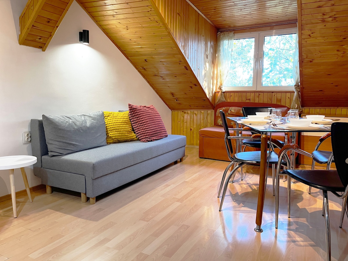 Բնակարանը գտնվում է քաղաքի հենց կենտրոնում ՝ օպերային թատրոնի, թատրոնի, հետիոտնային տարածքի և ռեստորանների հարևանությամբ ։ Այն ունի երկու սենյակ, երկու մահճակալով ննջասենյակ, որոնք կարելի է համատեղել, և նստատեղ ։ Հյուրասենյակում կա լիովին կահավորված խոհանոց, բարձր սեղան և թախտ, թվային հեռուստատեսությամբ հեռուստացույց ։ Երկու սենյակներն էլ ունեն առանձին օդորակիչ և Wi - Fi ինտերնետ ։ Լոգասենյակը կապ ունի ննջասենյակի հետ, իսկ ժամանման պահին հասանելի է տաք ջրատաքացուցիչ ։
